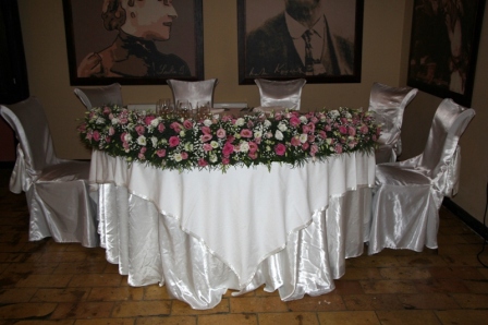 Dekoracije stolova zavise i od toga kog su oblika. Najčešće mladenački stolovi budu izduženi, ai postoje i okrugli. Uzdužne stolove možete dekorisati tako što ćete aranžman saviti na sredinu stola, ili da se prostire duž stola, što je klasična dekoracija. Takođe, možete poređati više manjih dekoracija ili ukrasiti prednju stranu stola. Okrugli stolovi zbog svog oblika zahtevaju aranžman na sredini. Mogu biti visoki ili niski, jedan ili nekoliko lepo uklopljenih, manjih.