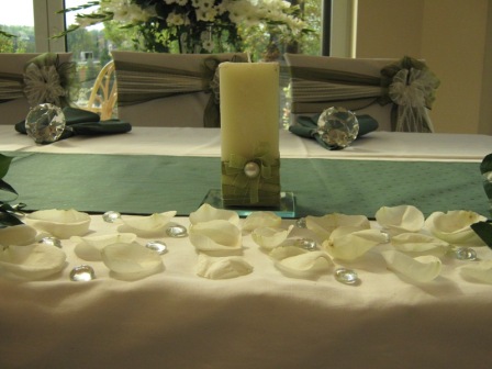 Mladenci bi trebalo da uživaju u detaljima koje sobom nose dekoracije stolova. To su salvete, sveće, kristali. Sve ono što će biti skladno uklopljeno i što će doprineti lepoti dekoracije. Salvete mogu da se slože na potpuno drugačiji način u odnosu na stolove gde će sedeti gosti. Mogu da budu čak i druge, odgovarajuće boje. Sveće doprinose romantici, a svećnjaci mogu da budu od različitih materijala, različitih oblika i boja. U tu sliku uklapaju se i latice ruža. Svakako, tu su i različite trake ili nadstolnjaci koji se mogu postaviti samo za mladenački sto.